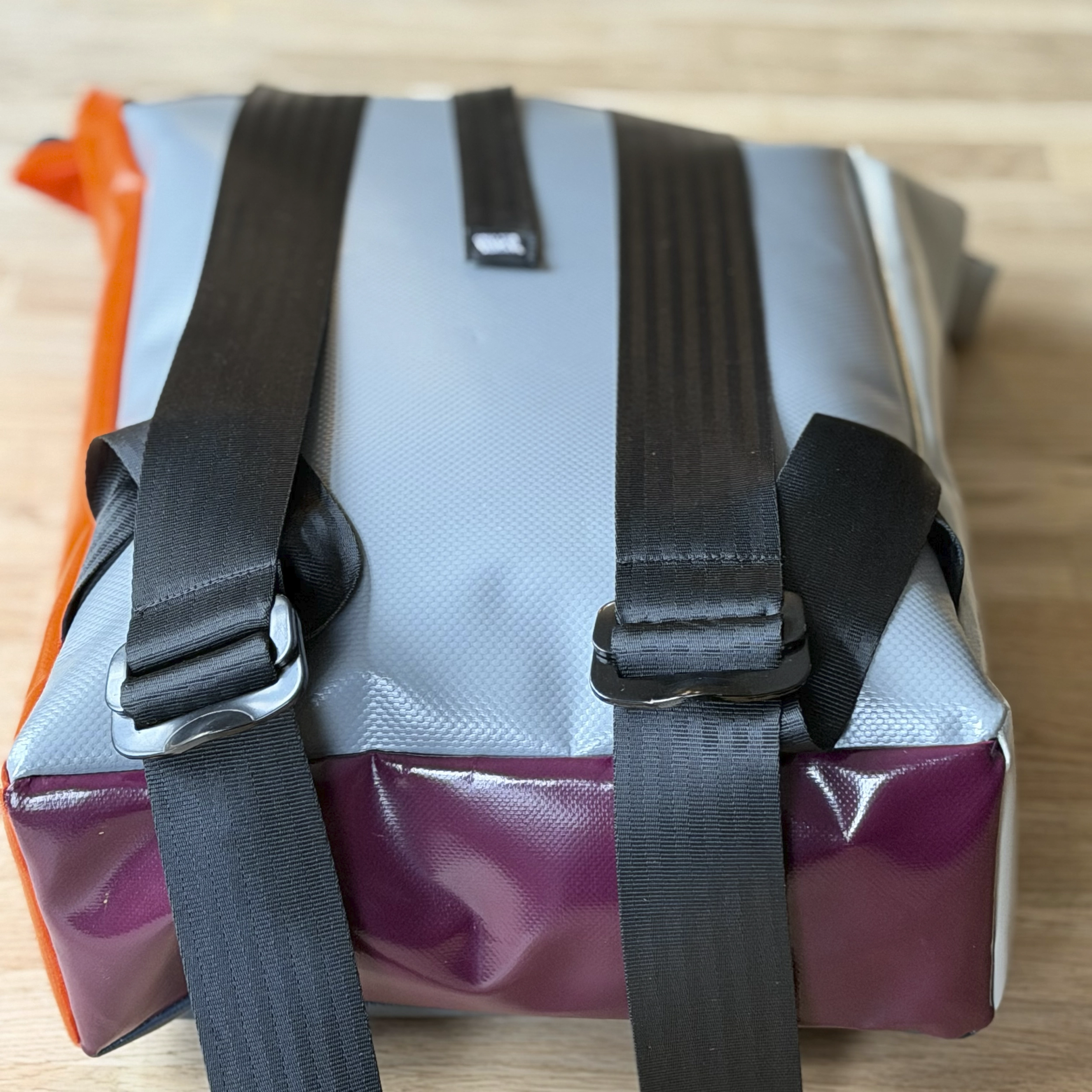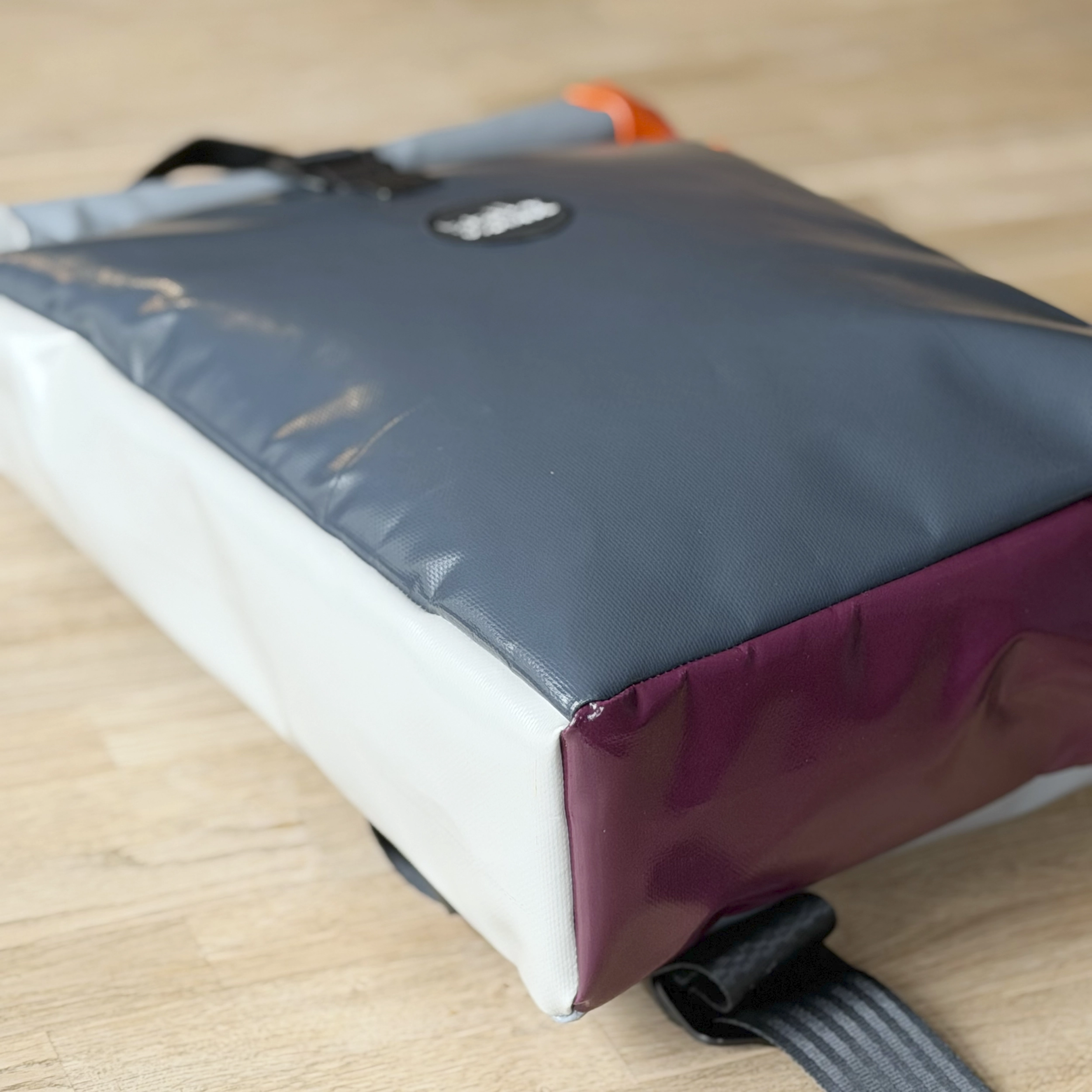 Deze rolltop rugzak is ontworpen voor dagelijks gebruik en actieve commuters. Elke rugzak wordt handmade in ons eigen atelier en bestaat voor 85% uit upcycled materialen. Het hoofdmateriaal is upcycled zeildoek: sterk, slijtvast en highly water resistant. Geen twee tassen zijn hetzelfde!
